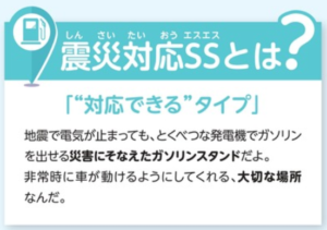 停電時でも発電機などにより給油が可能な「震災対応SS」といった役割を担っています。